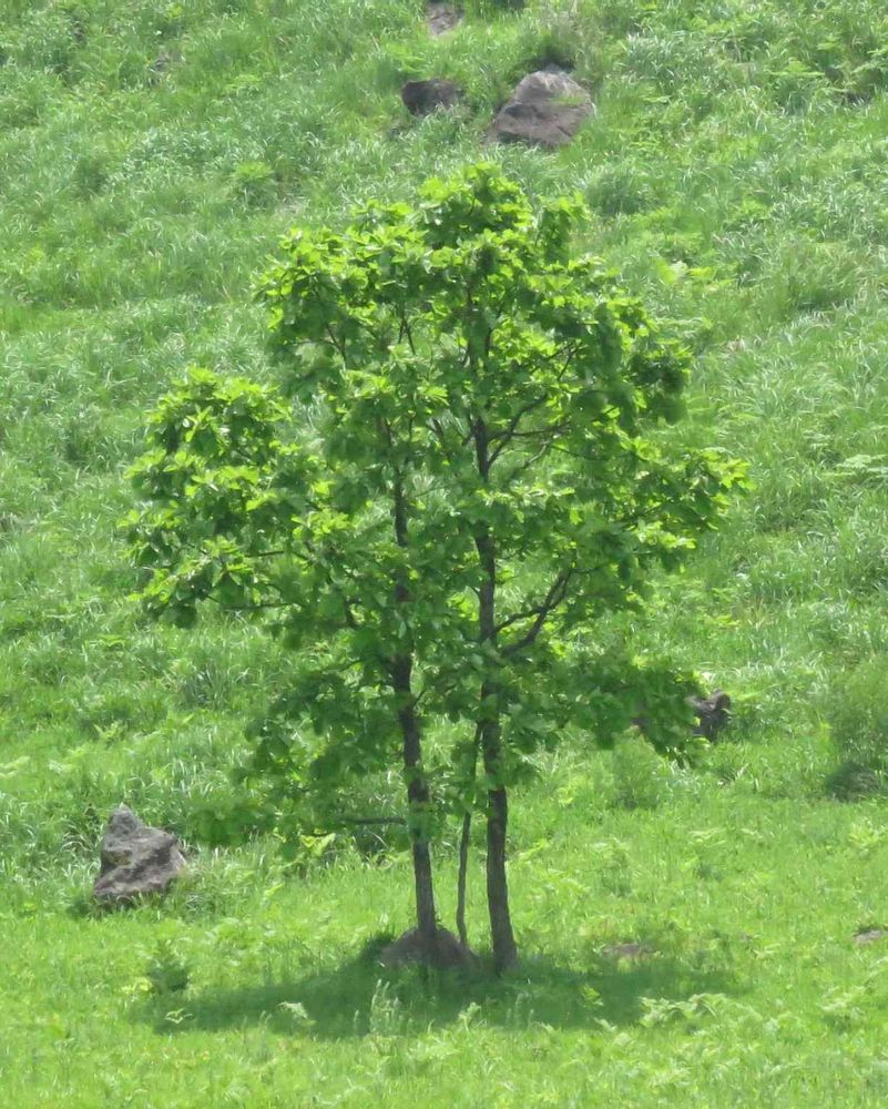 岩、斜面、草との関係で、カシワの木の大きさが分からなくて、不思議な感じの素敵さがあります。