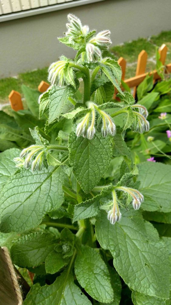 ボリジ もうすぐ咲きそうですが…葉っぱが…幼虫に食べられてる〜😱