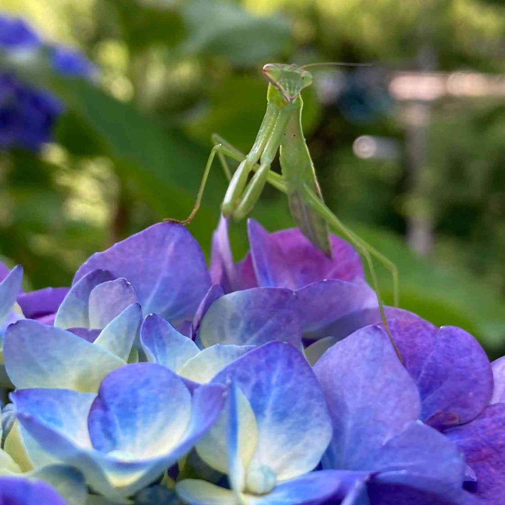 #紫陽花#アジサイ#北側#北側道路 #北側の庭 #マイガーデン#ガーデニング#ワイヤープランツ#緑のある暮らし #植物のある暮らし #green#Lovegreen#花#ボタニカルライフ#インスピレーションガーデン #青#紫#greensnap #6月 #plantstagram #flowers #gardeninglife #カマキリ