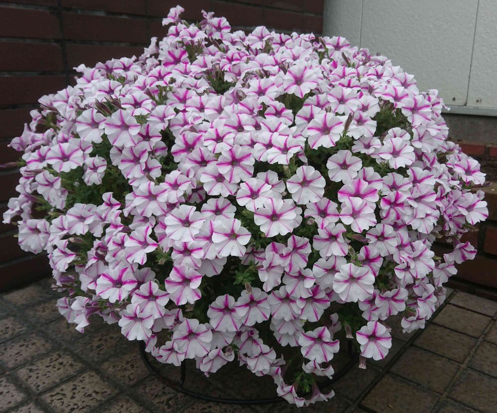 PWの苗は満開が終わった頃に鉢に沿ってまあるく刈り込むとその後摘芯しなくてもまあるくなってくれます🌸