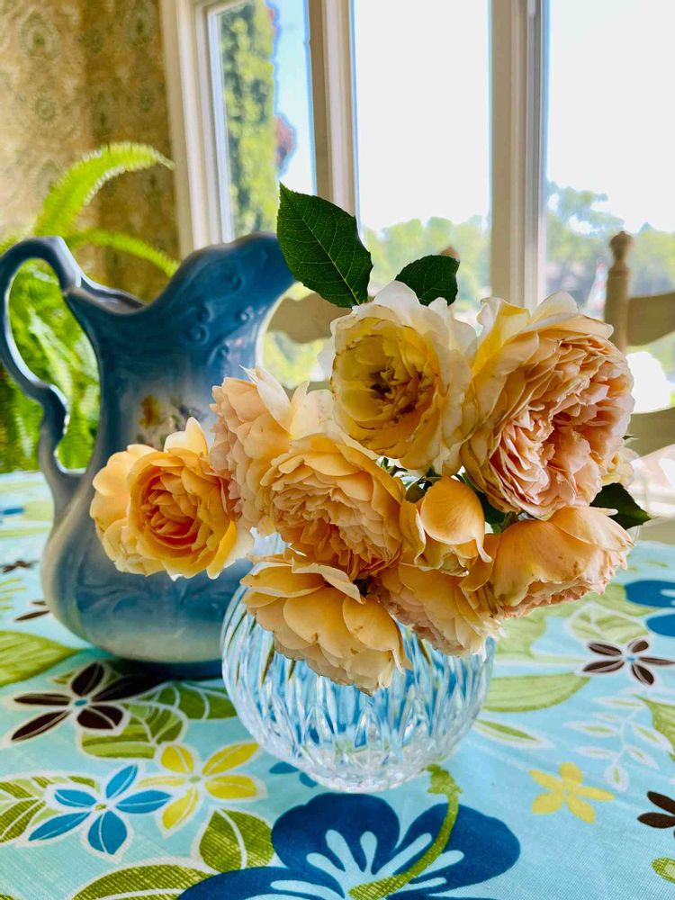 植え替えのために剪定したクラウンプリンセスマルガリータを花瓶に