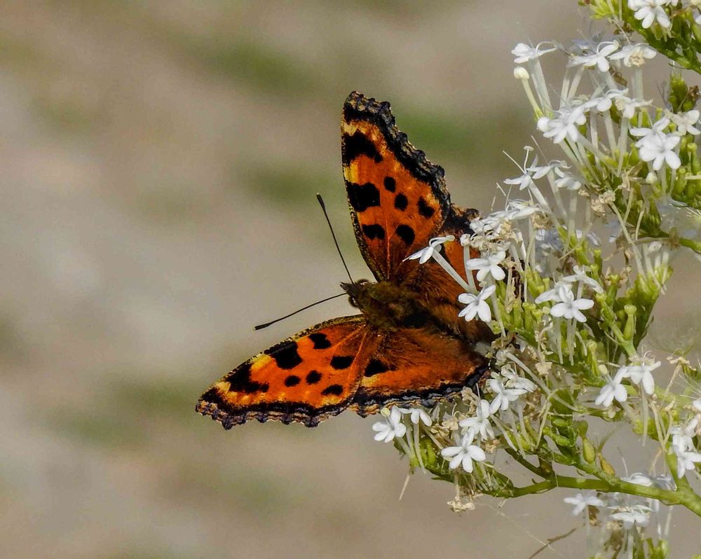 散歩道にて セントランサス スノークラウドの花に 蝶が 集まっています