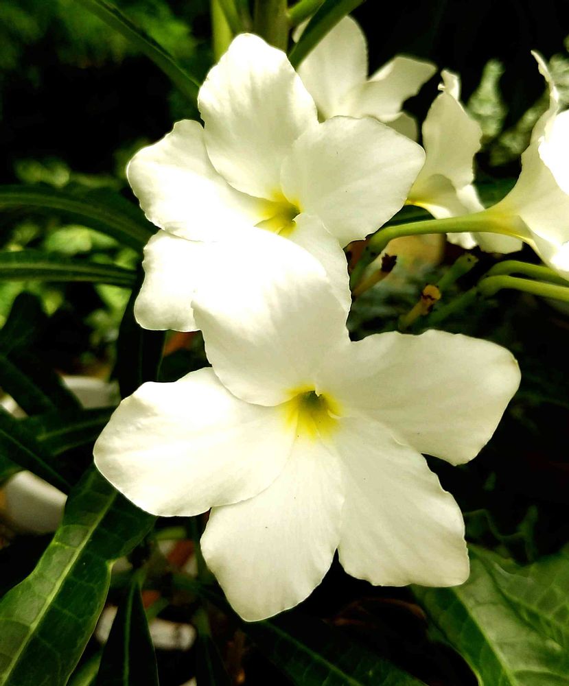 他のプルメリアと違ってひっそりと咲くイメージ💓💓葉っぱの形も細くて他のお花のようです(o^^o)