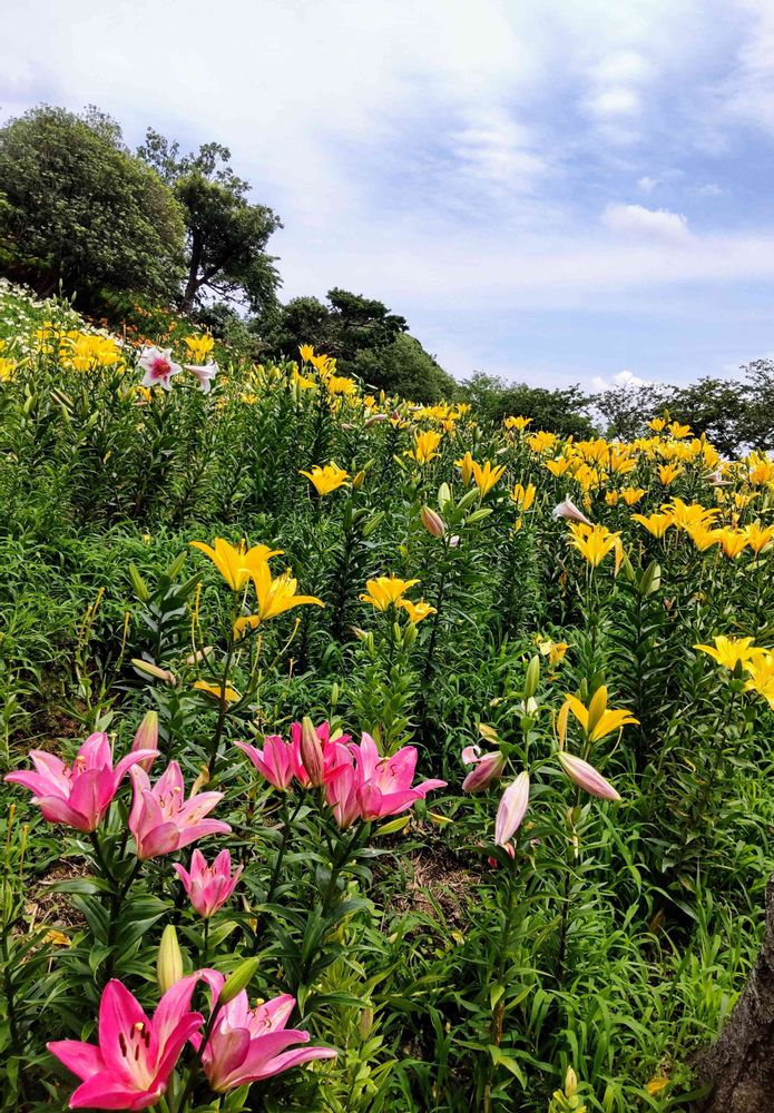 ユリが咲く丘と、青空❇️🌿💗💛🤍💙
