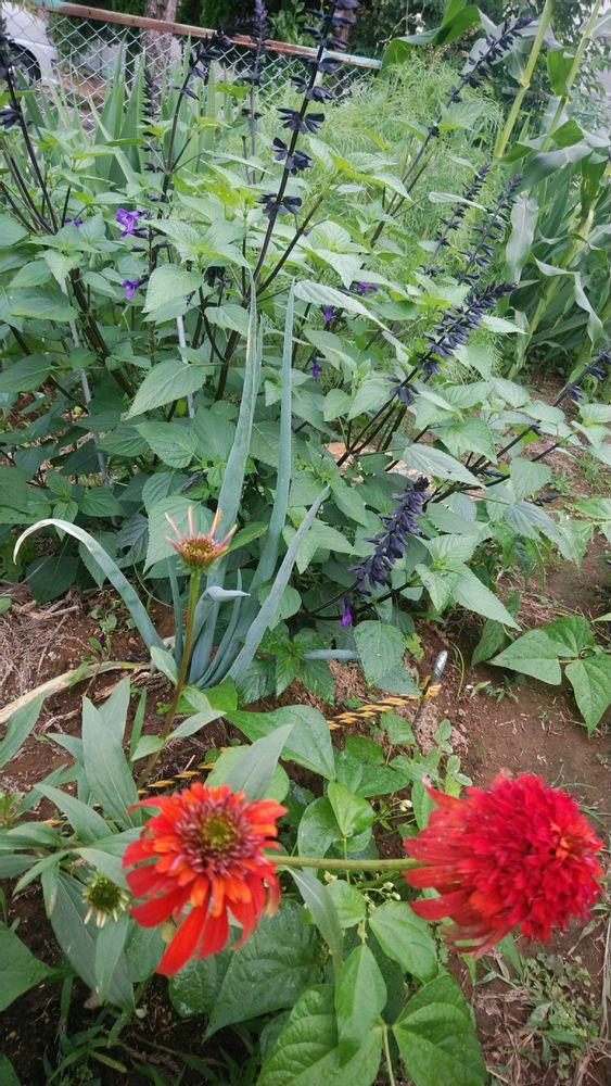 PWスーパーサルビアロックンロールディープパープル(長い💦舌を噛みそう😝)とエキナセアホットパパイヤ 釣り合いとれてんのけ?