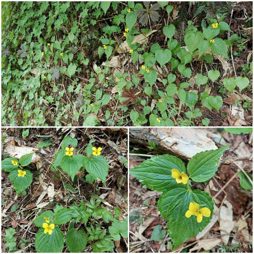 林道🌳の斜面や足元👣に群生していた小さくて可愛い黄色いオオバキスミレ💛💛ビタミンカラーで元気貰えました😃⤴️🎶
