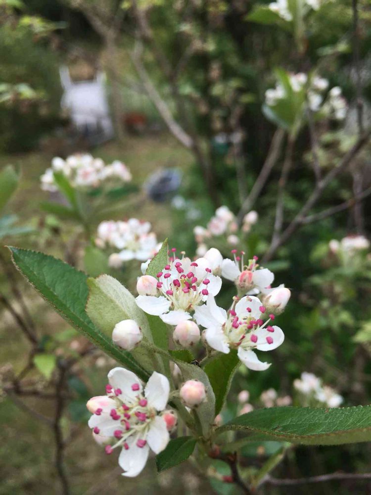いつも見るカマツカと違うと思ったら、これは赤い蕊が特徴の西洋カマツカだったのですね!カマツカより樹形が整えやすいので多くなっているみたいです。この話先日知りました。( ◠‿◠ )