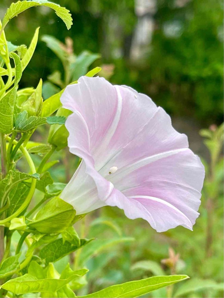 朝顔と識別するのが難しいですが、色が薄ピンク色、花びらの曜が5本あるなどでしょうか🤔