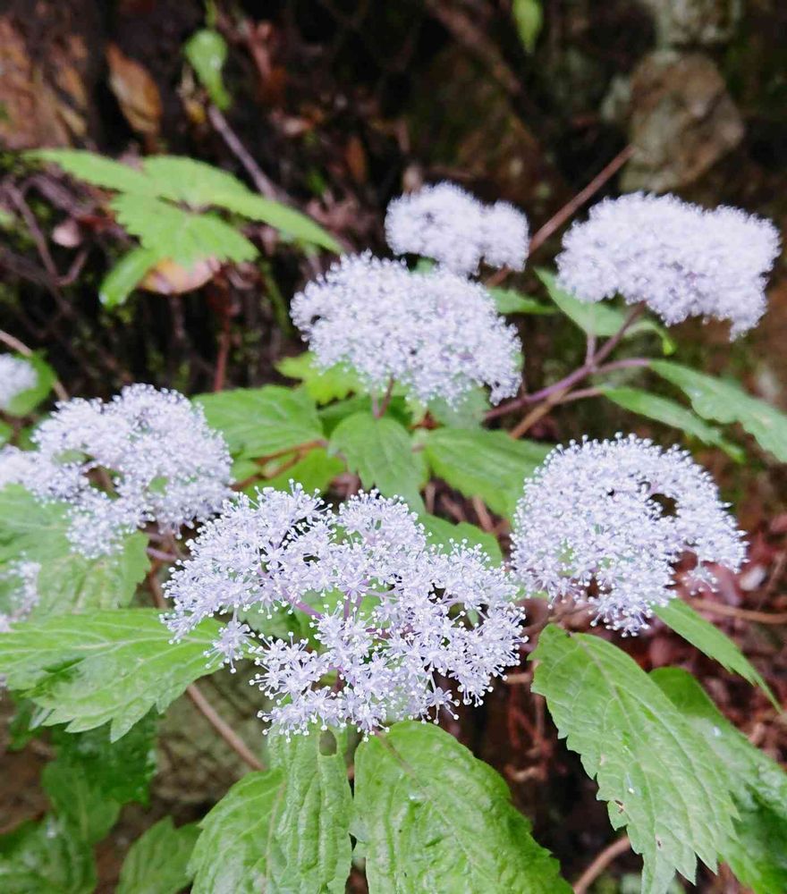 アジサイ科アジサイ属の落葉低木。明るい林内に生える。大葉のような葉は薄くて柔らかく表面に光沢があり、縁に大きな鋸歯が規則的につく。花期は6~7月。紫がかった細い枝の先に、淡紫色の小さな両性花が半球状に集まって咲く。5枚の花弁が平らに開き、10本の雄しべが飛び出す。他のアジサイのように大きく目立つ装飾花をつけない。果実は蒴果。広楕円形で長さ2〜3㎜。下半部が萼に包まれ、果実期にも萼片が残る。上部に3〜4個の花柱が残り、秋に褐色に熟すと上部が裂開して種子を出す。種子は小さく形は様々。