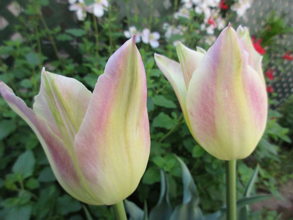1番最後に咲いたチューリップ。クリーム色とピンクで優し気なチューリップです♡