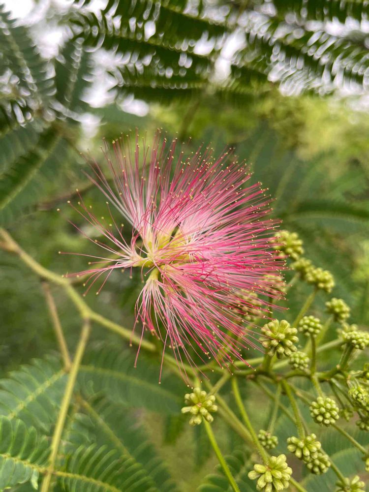 蕾から花が咲く直前のモジャモジャが見たい👀けど木が高くてとても見られません