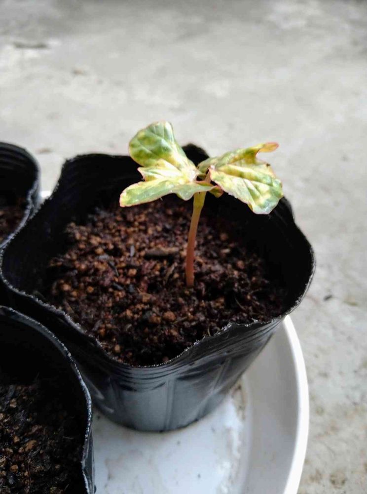 「朝顔 紅冠(こうかん)」 の芽が出ました。