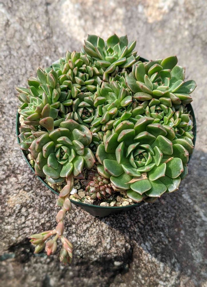 百均のオリビアだと思うのですが…葉挿しで育った子たちを春に1つにまとめていたものが…いつの間にかモリモリギュウギュウになってしまってました😱