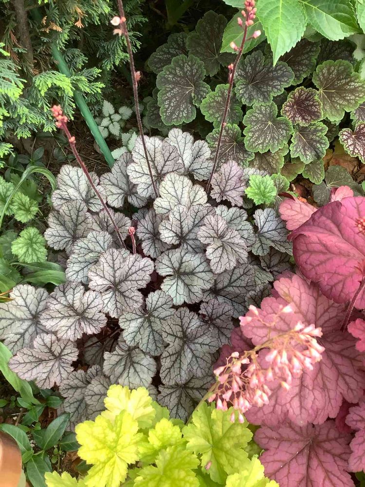 さん 地植えでヒューケラ寄せ集めてみました。💕
