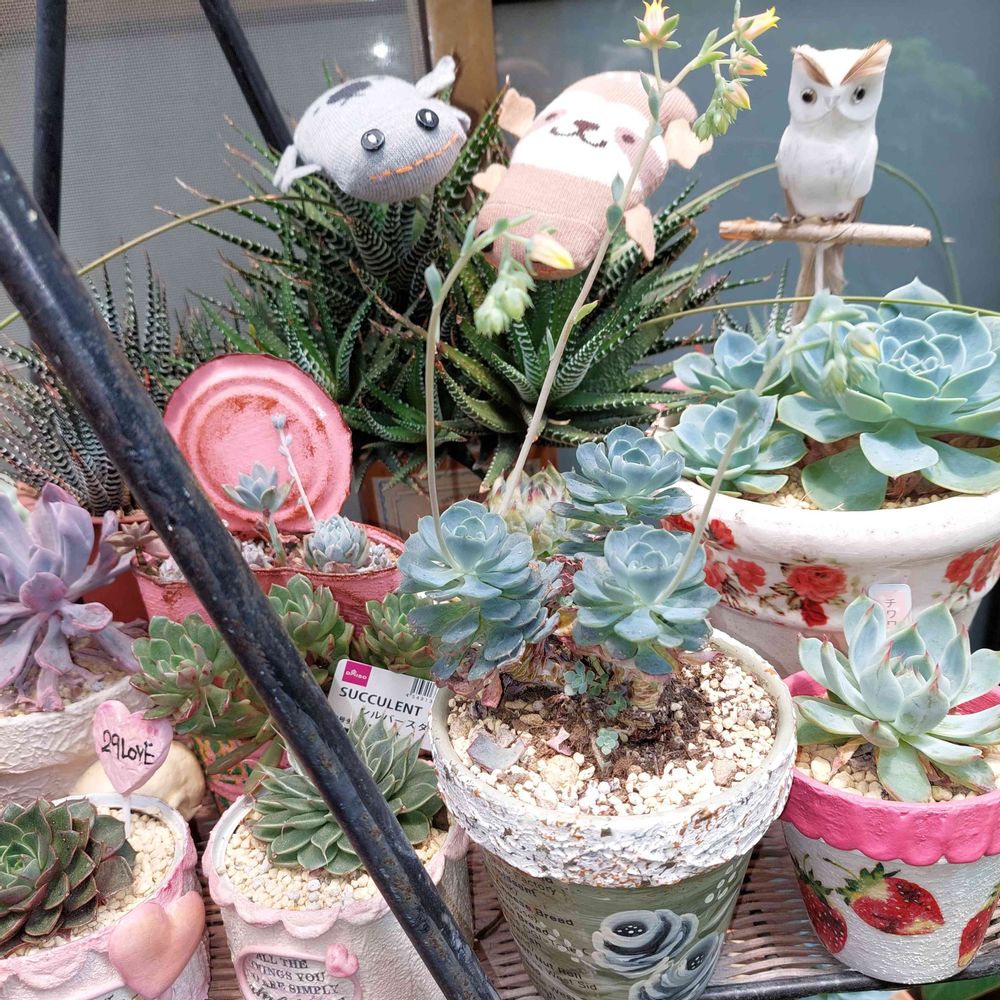 名前買いしたハッピーさんに花芽が出ていていつの間にか開花してました💛