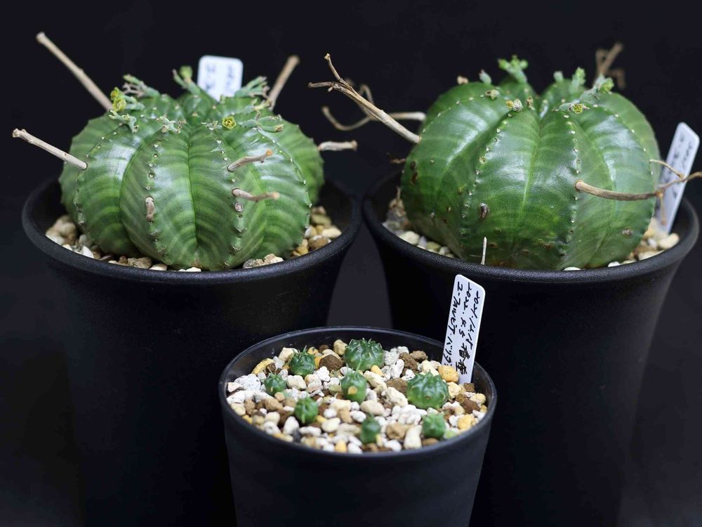 父👨(ユーフォルビア・バリダ)と母👩(ユーフォルビア・メロフォルミス)とその実生っ子👶たち