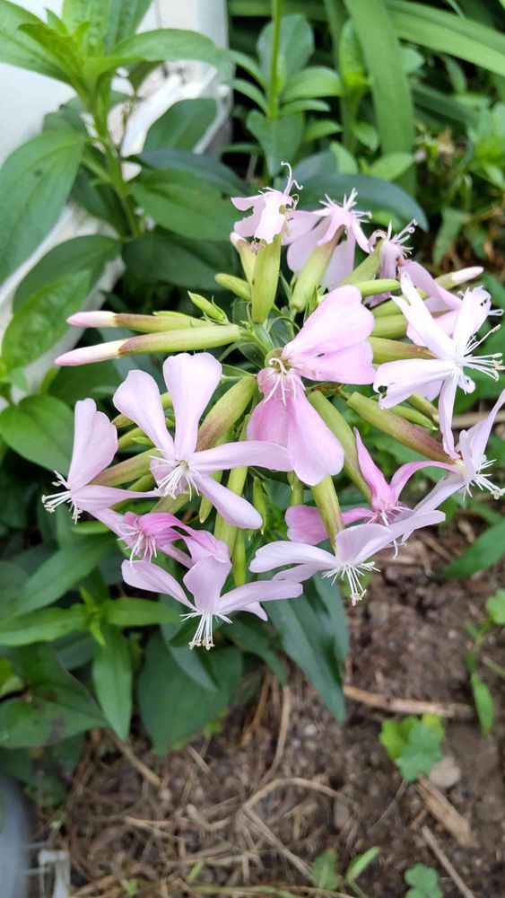 さぼん草咲きました。毎年、爆発的に増えて他の植物を日陰にしてしまいます。綺麗なので許します。😃☺️