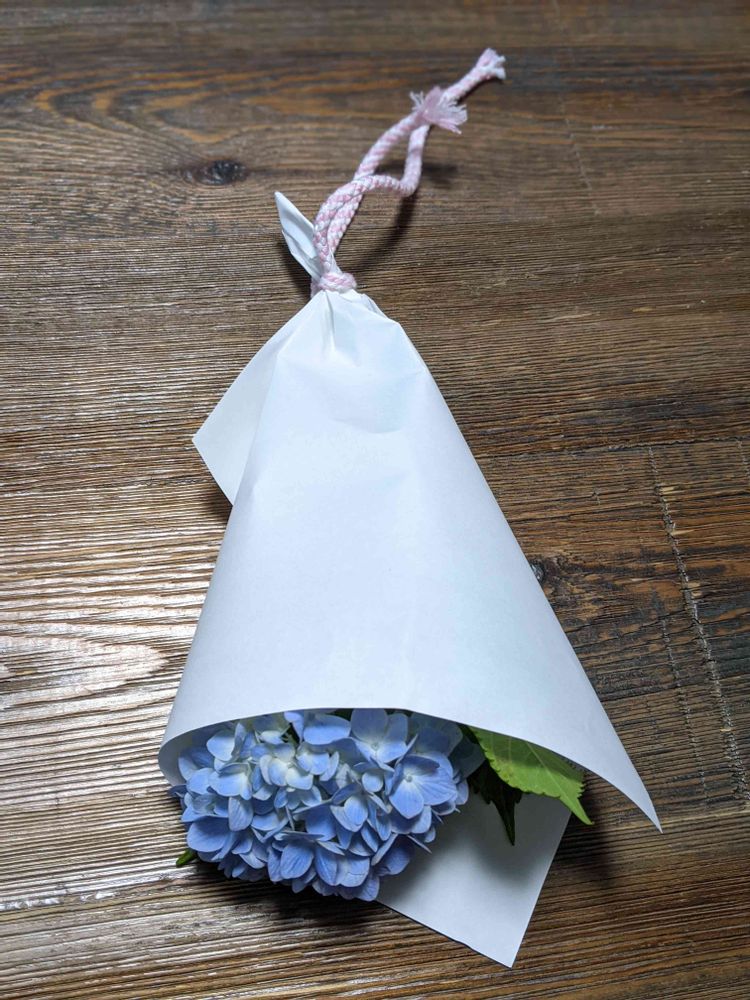 魔除けの花とも呼ばれる紫陽花のおまじないで幸せになるそうなのですが夏至の日限定の運気が上がるおまじないが夏至の日前日朝に切っておき当日の日の出前に半紙に包み金銀の水引をかけて玄関や軒先に逆さに吊るすというもの。