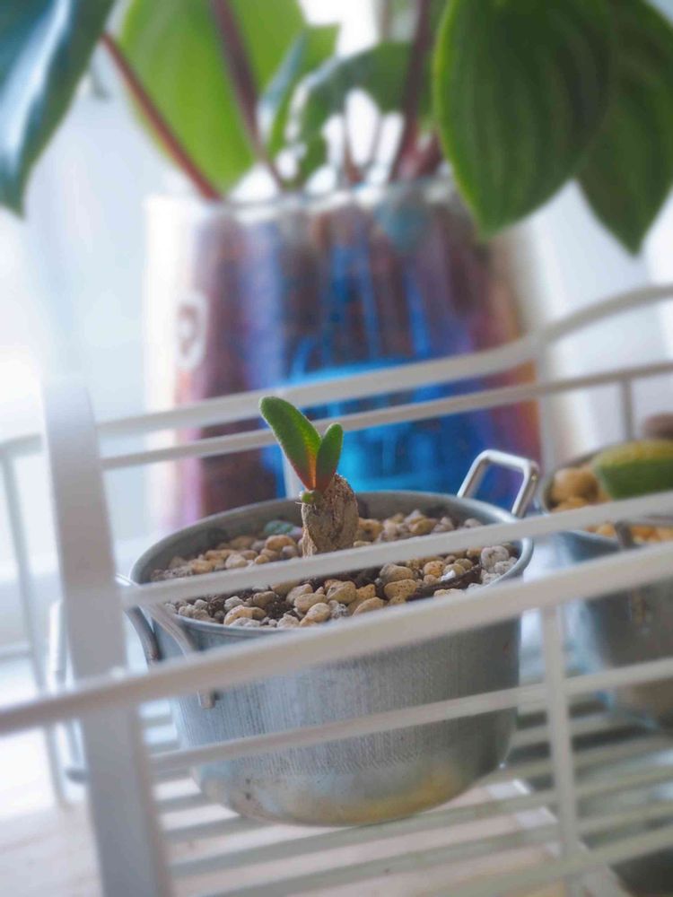 葉に厚みが出てきてるのと、2枚の内の小さい葉も下の茎部分の赤いところが増えてる気がする💡
