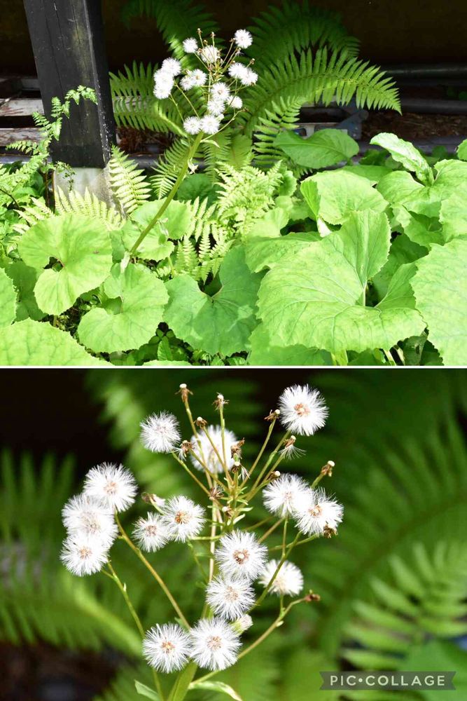 縁の下に「フキ」の綿毛が開いてます。この日の夜は結構な風で、翌朝、綿毛はみんな飛んでしまってました😅