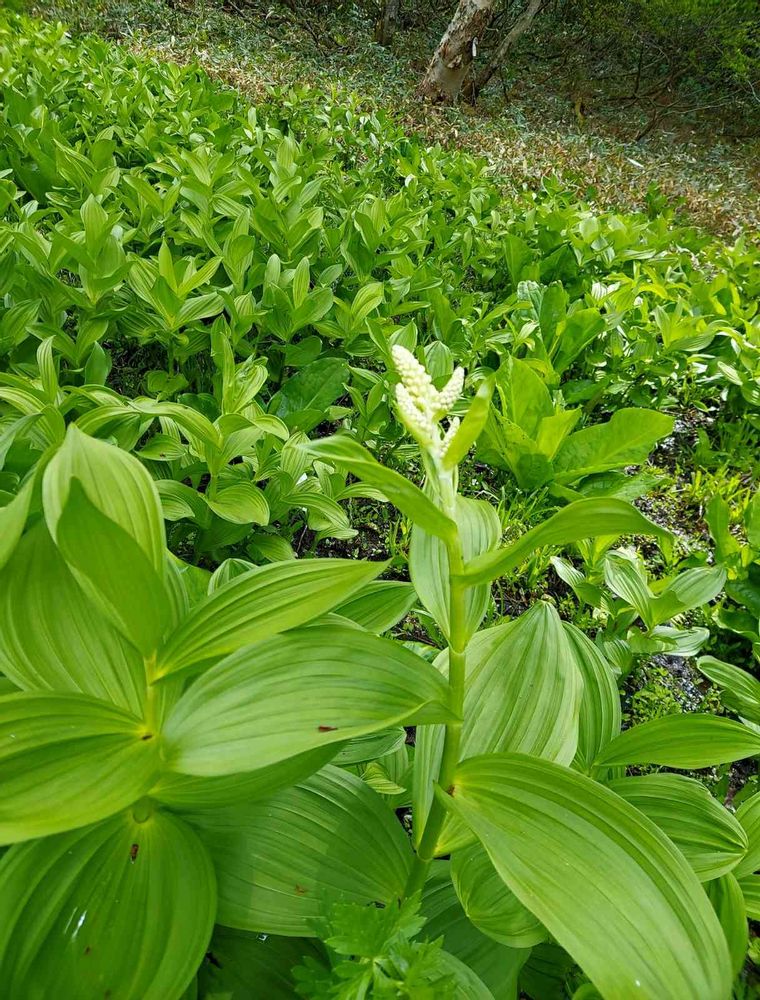 一面に咲いていた艶々の葉🌿コバイケイソウの群生👀‼️1つだけ蕾をつけていて間もなくお花が咲きだしそうでした😊🎶