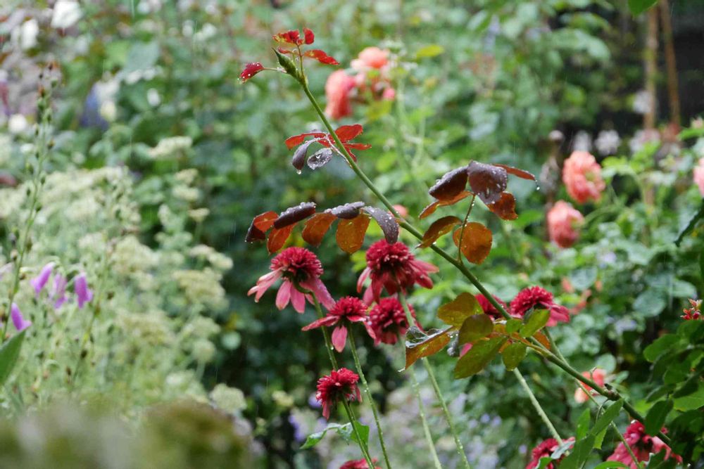 雨に濡れるエキナセアエキセントリックです。まとまった雨が降って