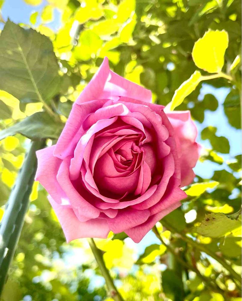 先月当家にお迎えした1.7m位のローズ・ポンパドゥールさん。一杯ついてる蕾の中で一番目に二番花の蕾を広げてくれました。