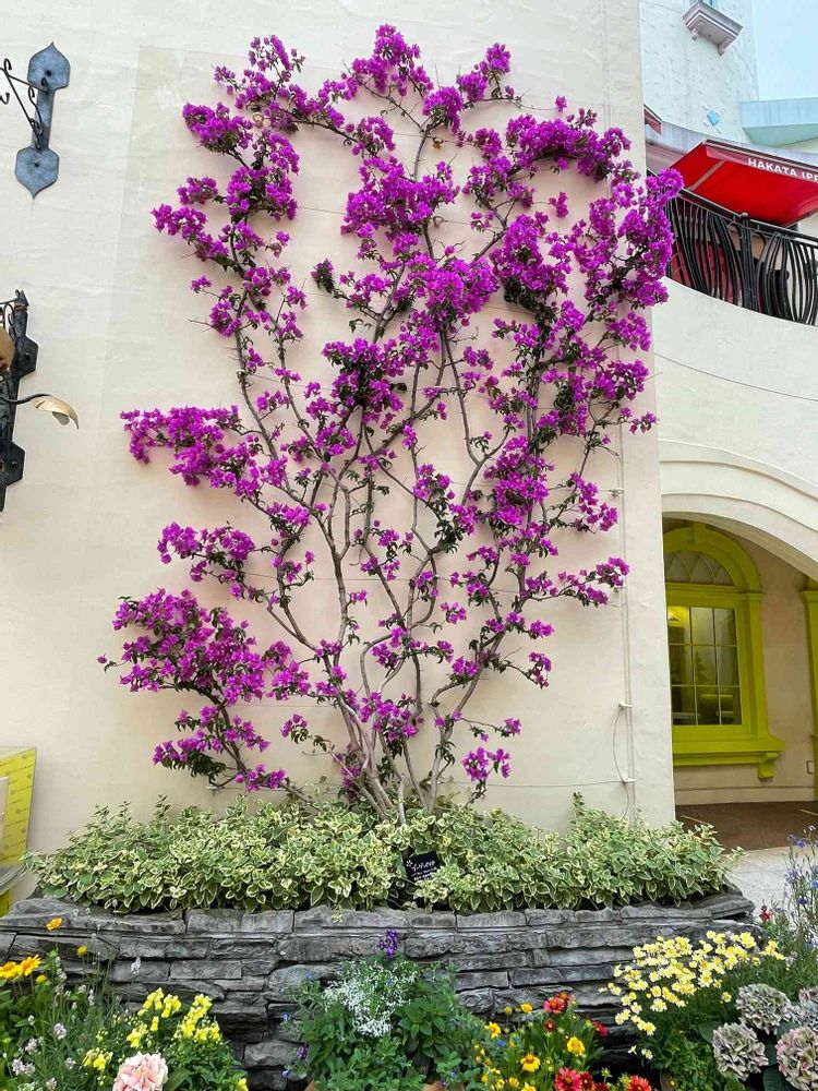 ブーゲンビリアは、誘引してあるのでしょうか?壁に綺麗に沿ってますよね💜