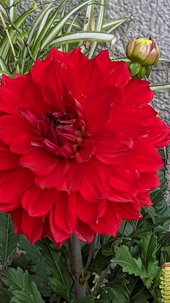 立派な大きさで真っ赤なダリアは遠くからでも目立ってます。