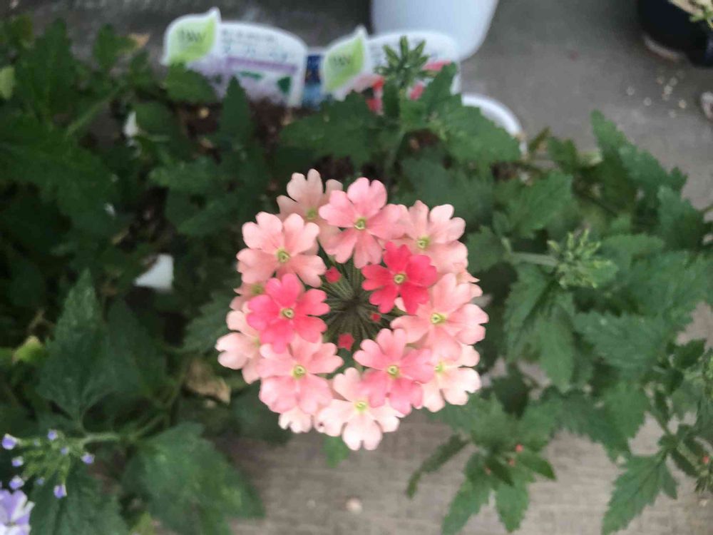 スーパーベナという花みたいです。バーベナの一種のようです。もう一つの青いのと一緒に植えたのになかなかこの色の花が咲かなかったのですが、数日前に咲きました!きれいな色!