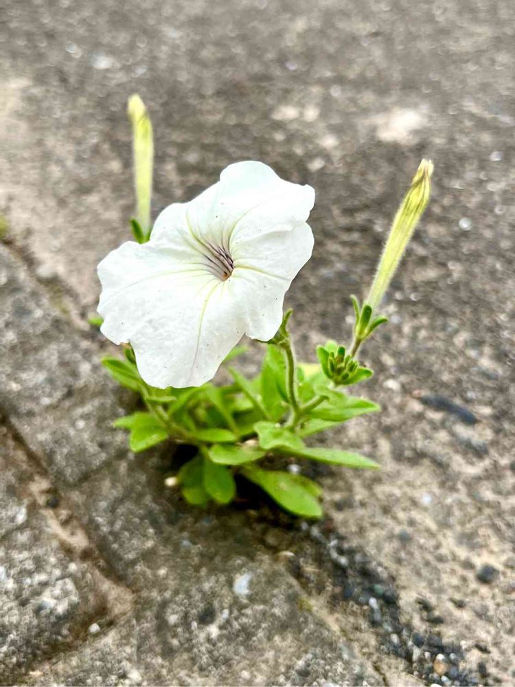 うちの前の道路に零れ種で咲いたと思われるペチュニアが!なんて逞しい…!😳