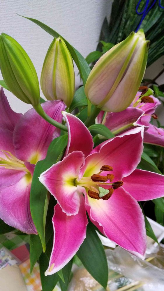 花屋さんでシベが取られてしまった😵💧(左)花粉付きでつぼみが開いてくれた( ^-^)ノ∠※。.:*:・'°☆😀