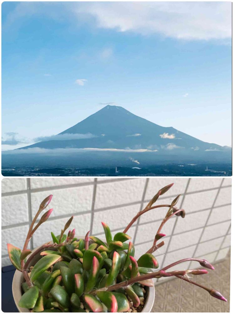 この時期は、富士山になかなかお目にかかれない日ばかりで、今朝はラッキーでした