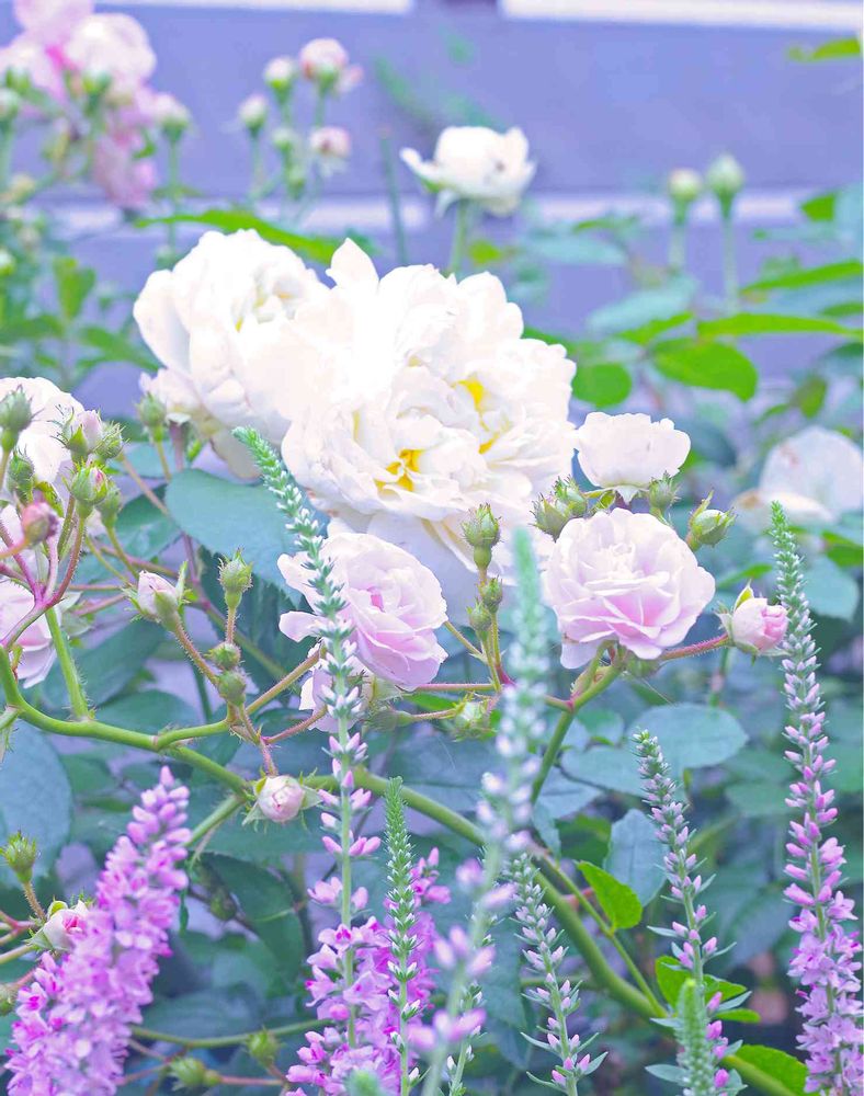 🤍ゾーン➡︎🩵ゾーン➡︎🩷ゾーン 色別グラデーション・バルコニー計画試行中✨ 香りのあるバラやハーブが好き! 真夏と真冬はサボリがちでごめんなさい💦
