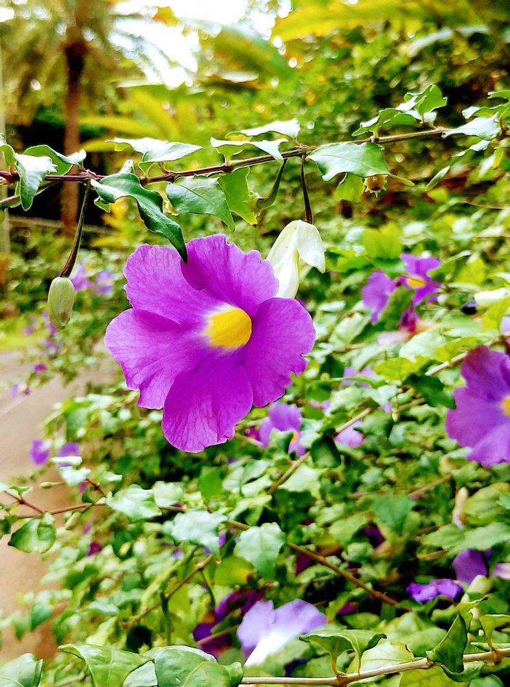 ツンベルギア💜💜💜沢山咲いています!梅雨明けと同時に色々なお花が咲き出したようなー🌸🌸でも暑さに耐えられるかな?今日も30度以上の予報です☀☀☀