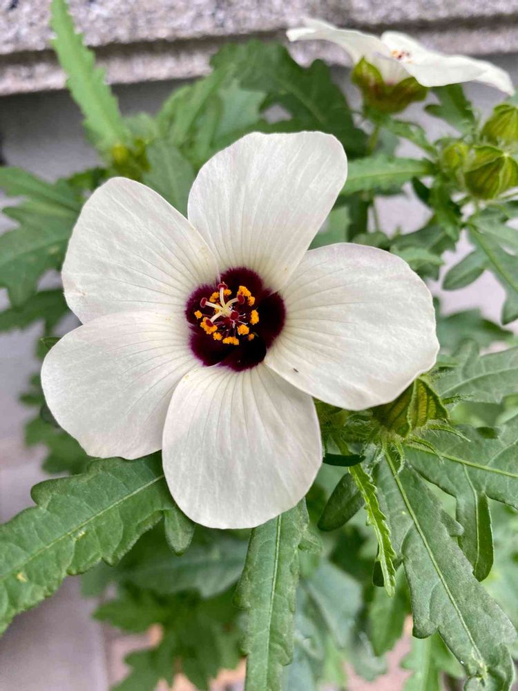 背丈は30cmぐらいで どんな花なのか分からず今朝、2輪真っ白なお花が咲いて嬉しかったわ😍