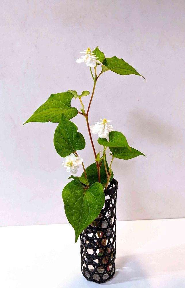 花友さんから八重のドクダミを切り花でいただいたのを生けてたら根っこが出てきたので鉢植えにしました。