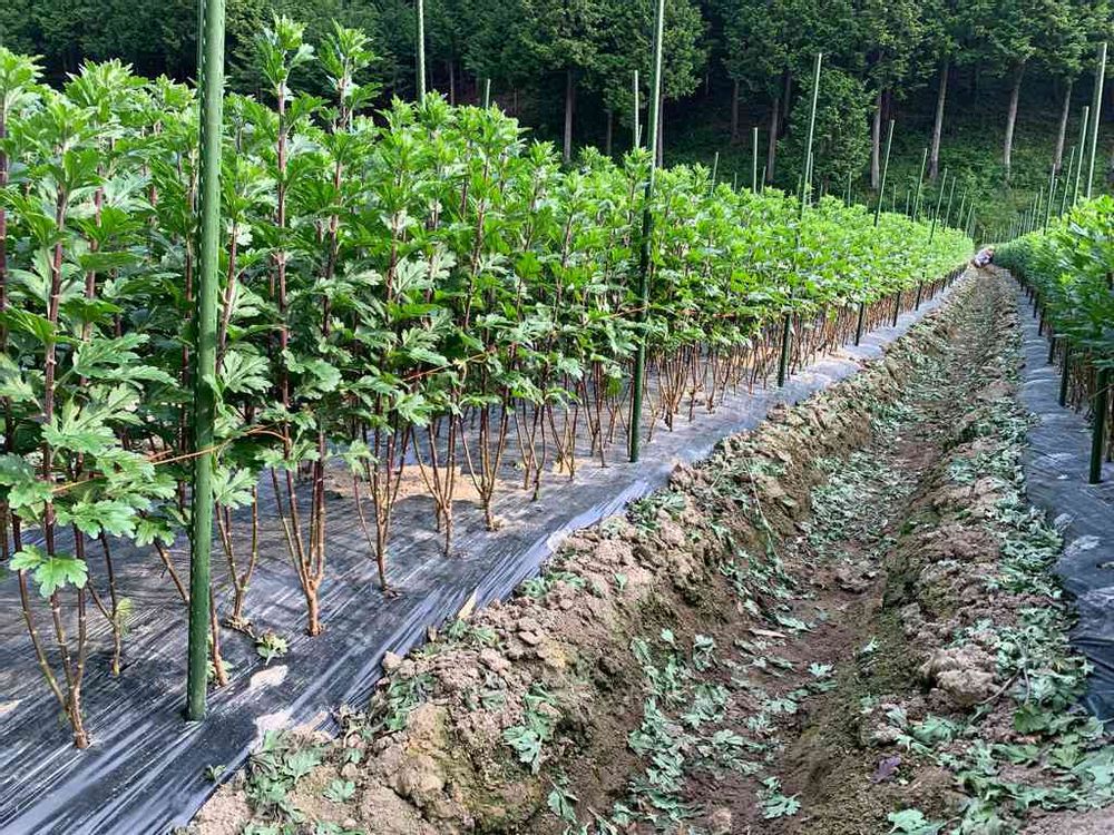 さん😀隣の畝でご主人もされてました😀町内にはもっと広い圃場でされてる方が居られます😀ここのおじさんも高齢なので、来年は辞めたいって言ってました😅お盆になって、菊を見たら農家さんも大変なんだなぁって思ってあげてください😊