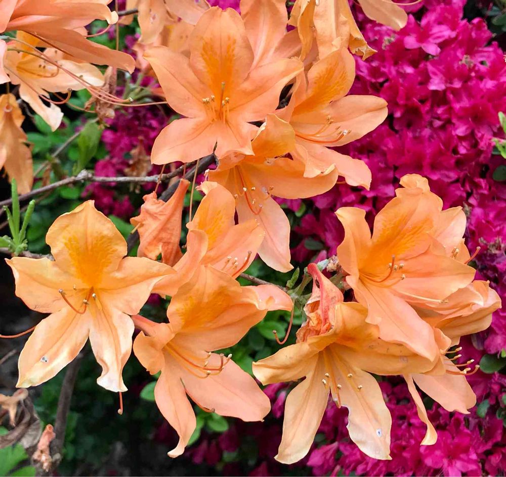 オレンジ色のれんげつつじ(蓮華躑躅)〜 根津神社