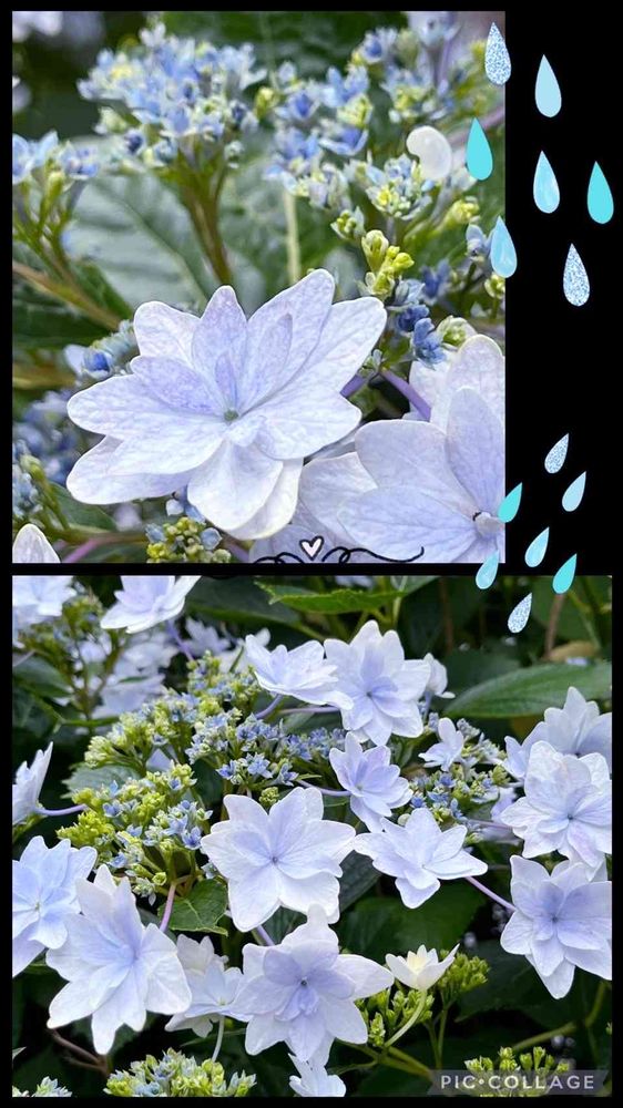 八重の装飾花(萼片)も白から薄い水色に💙🤍✨