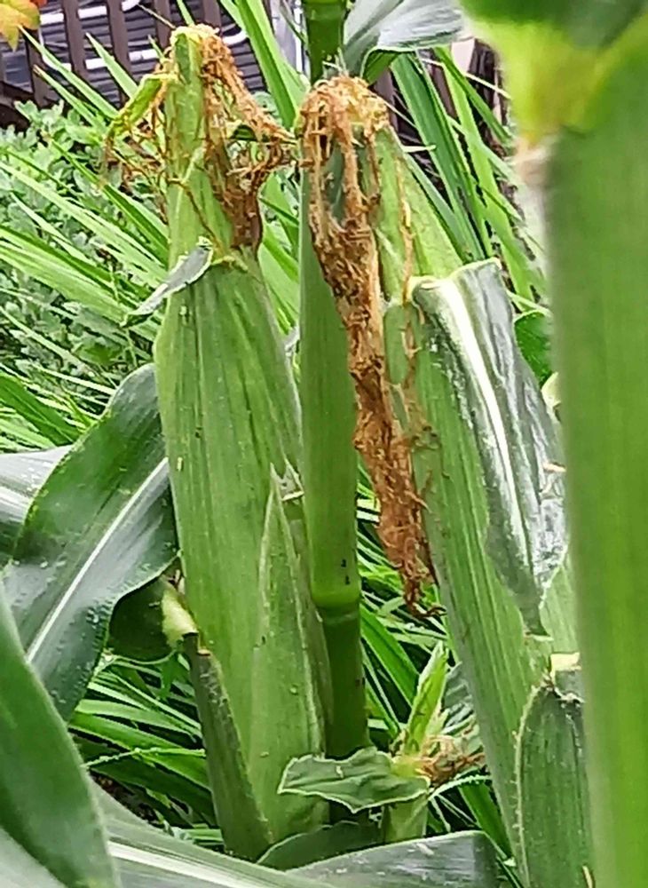 トウモロコシが立派に育ってきっとお隣のお子さん気になるのでしょうね🌽
