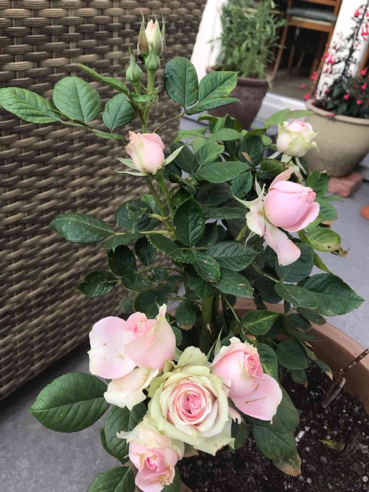 以前息子の彼女から貰ったミニ薔薇 名前が分からないのでカテリーナの薔薇って呼んでます🥰 薄いグリーンに包まれたピンクが何とも可愛い💕 昨日東京にいる義母と話して黄色の一重の薔薇が来年の母の日に欲しいと言うので、ネットで探してサニー・ノックアウトを注文 植え替えも頼んで。今朝その事をまた電話☎️したらすごく喜んで☺️ いつも何も母には出来ないから時々は良い嫁をやらなくちゃね😅