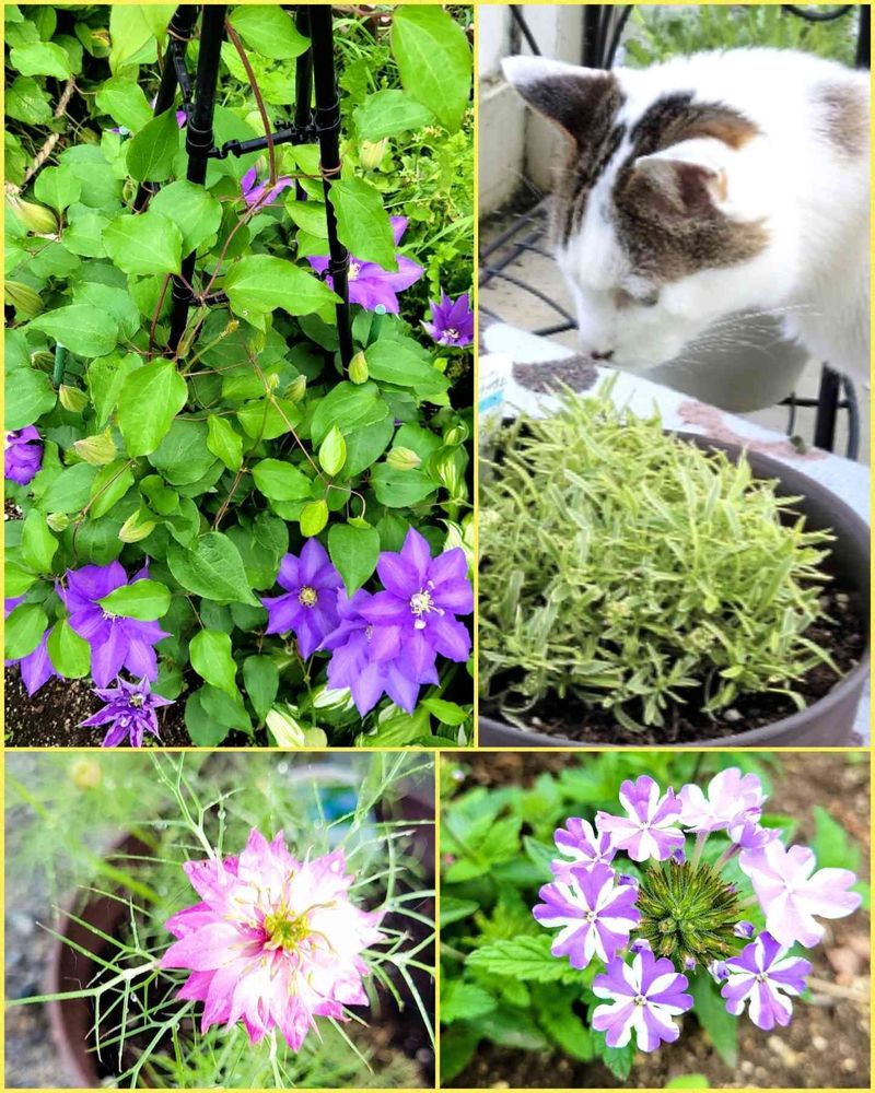 庭のクレマチス、スーパーベナアイストゥインクル、ニゲラ八重咲きビンクも咲き始めました😄🎶