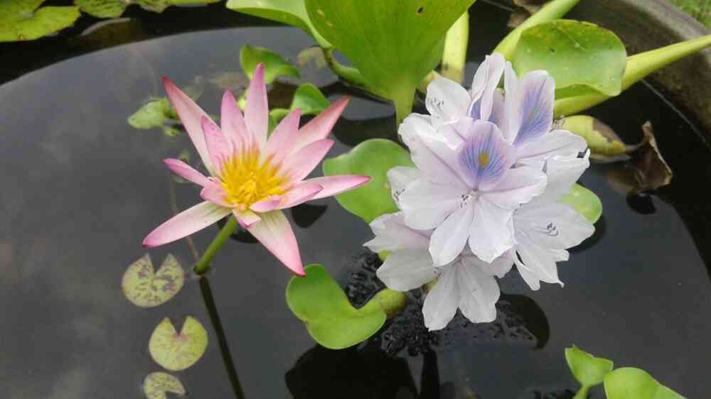 数日前に咲いていた熱帯スイレンとホテイアオイです。