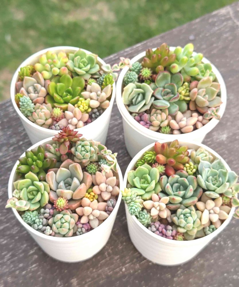会社の先輩が某テレビ番組の多肉植物の特集を見たらしく興味を持っているようなので🏠に帰りさっそくミニ多肉寄せ植え作ってみた😆
