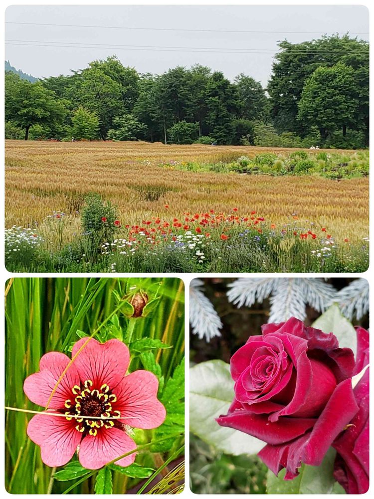 麦の緑から黄金色が楽しめて、刈っても寂しくならないようにしてあるのかなって感心しきりです😍✨