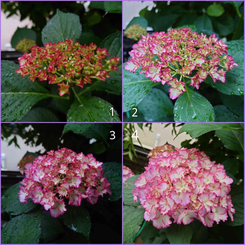 ①が6/7日、④が6/22日・昨日の紫陽花嬢です。二週間の変化を残しました。