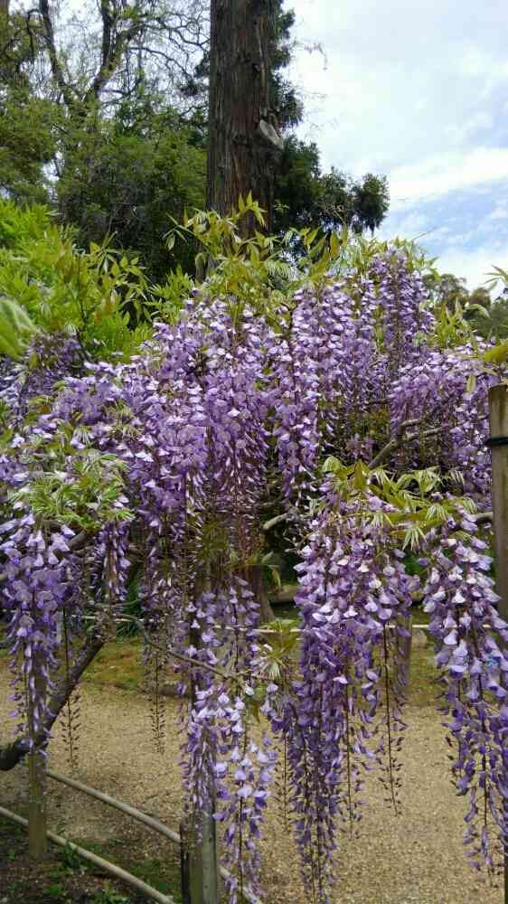 本殿前の「砂ずりの藤」よりきれいです。辺り一面に藤の香りが漂います。夢のような場所です。現在満開中。