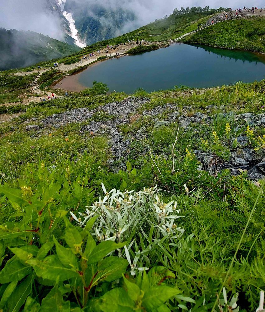 ミネウスユキソウと八方池のコラボが素敵ですね😍💓🎶