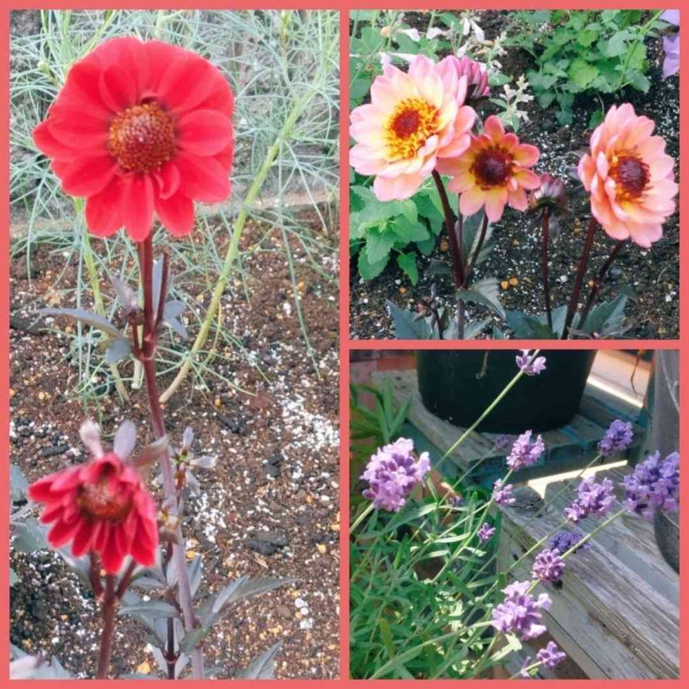 銅葉プチダリア・ピュアリップさんとラベンダーが綺麗ですね😍🏵🌿✨